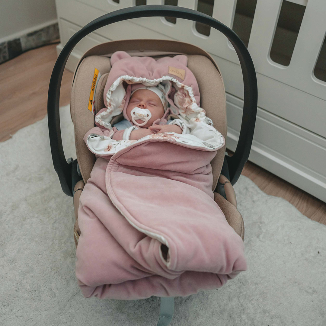 Our car seat wrap is warm and soft, made of high-quality cotton and velvet. It has anti-allergenic, breathable filling to keep your little one comfortable on the go. It is delicate and pleasant to the touch, does not irritate the baby’s skin.