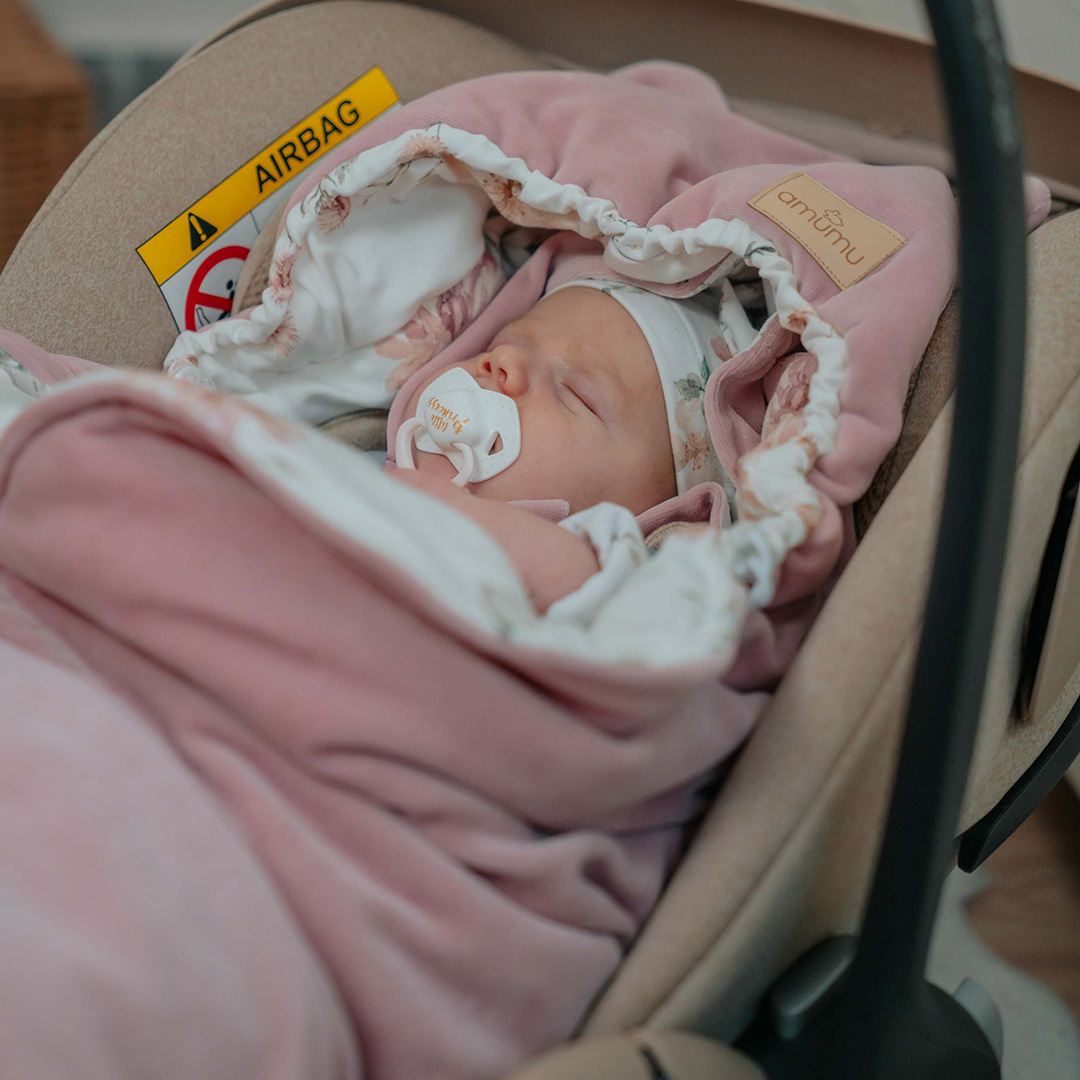 Thanks to its universal seatbelt holes, the wrap will be perfect for any car seat (including those with 5-point seatbelt attachment) and stroller. Our car seat blanket, thanks to its universal size fits babies from 0-15 months. Initially, it will serve as a wrapper in the car seat/gondola, later, when the toddler grows up, it will be perfect as a cover in the stroller.