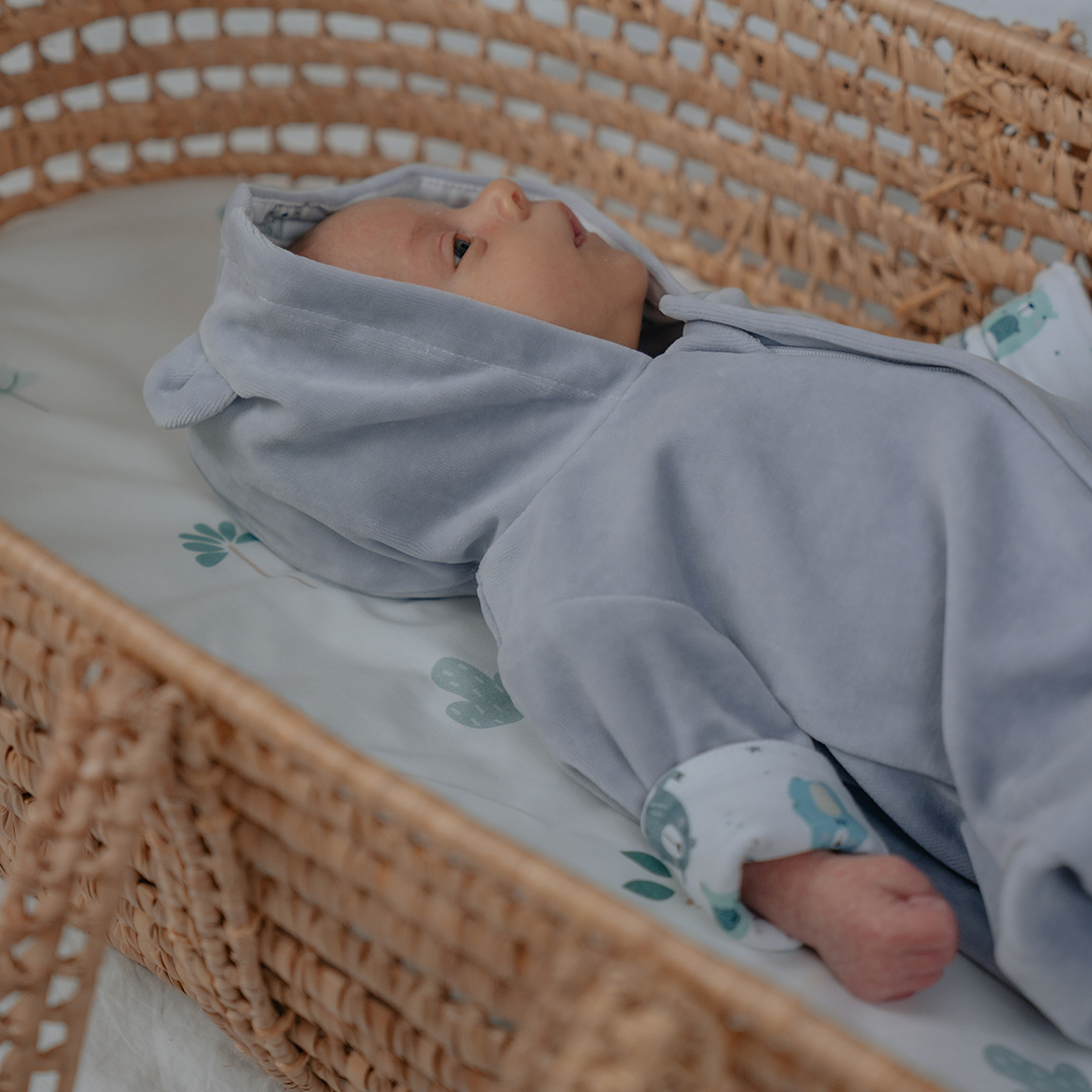 Velour baby jumpsuit Pastel Bears gray