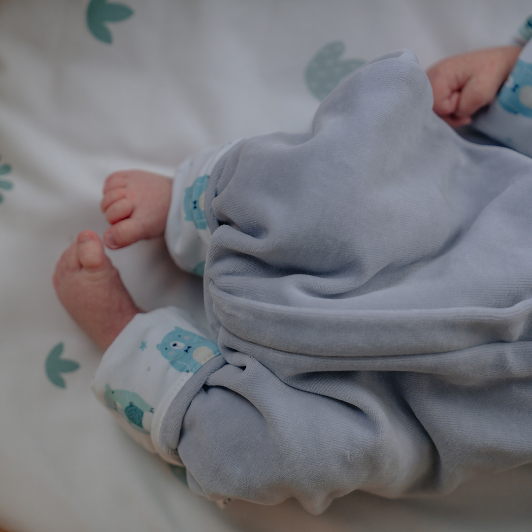 The infant suit fastens with practical slider, much faster to use than traditional tooltips. Unzipped from both the top and bottom. The zipper is covered by a special tab so that it does not directly touch the toddler’s body.
