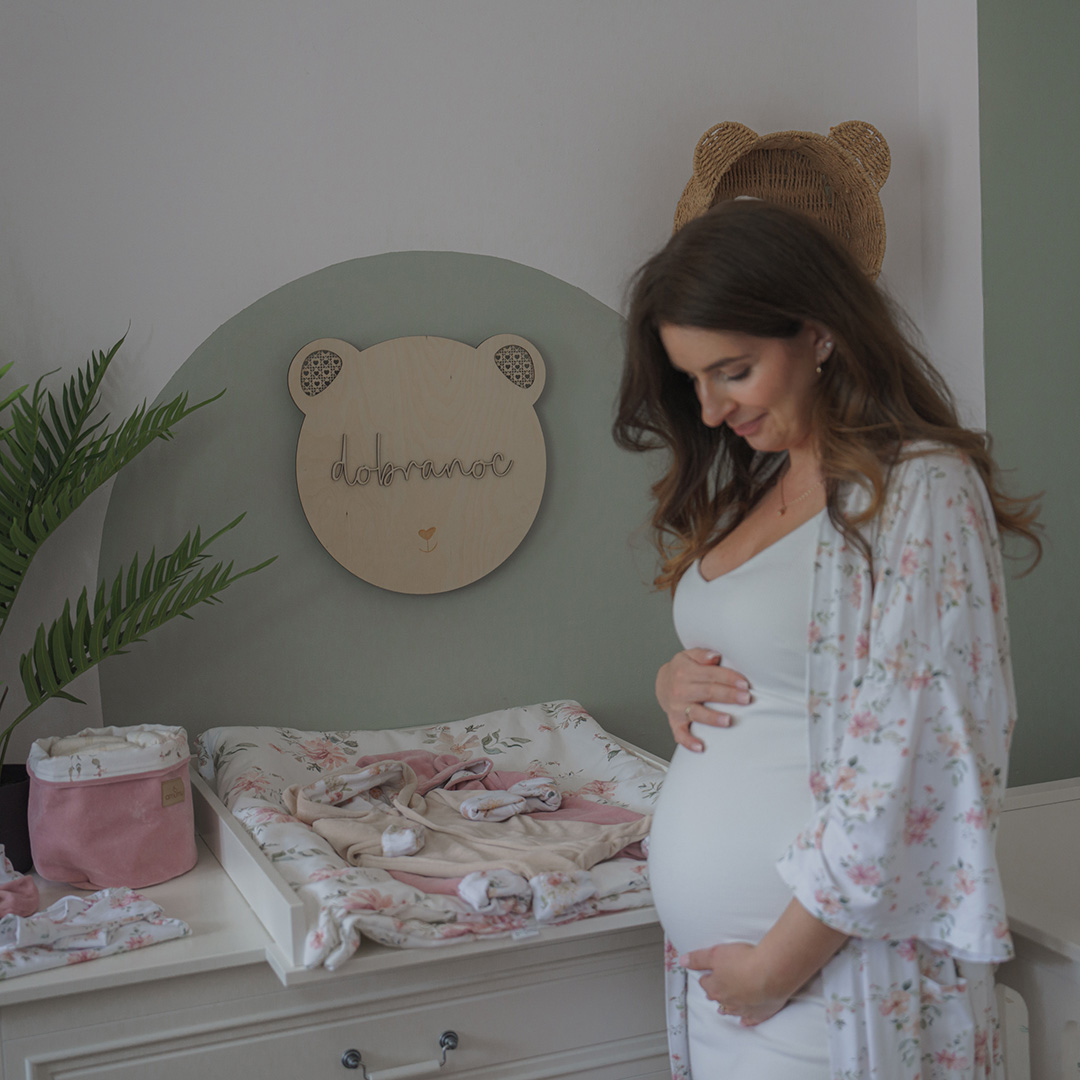 - Autorski wzór pięknie komponuje się z ubrankami dla niemowląt – dzięki czemu możesz stworzyć zestaw mama+córka