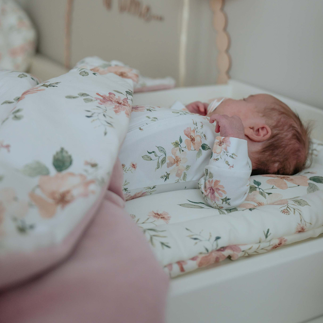 Dwustronna poduszka do karmienia, wykonana z wysokogatunkowej bawełny z pięknym wzorem Magiczny Ogród.