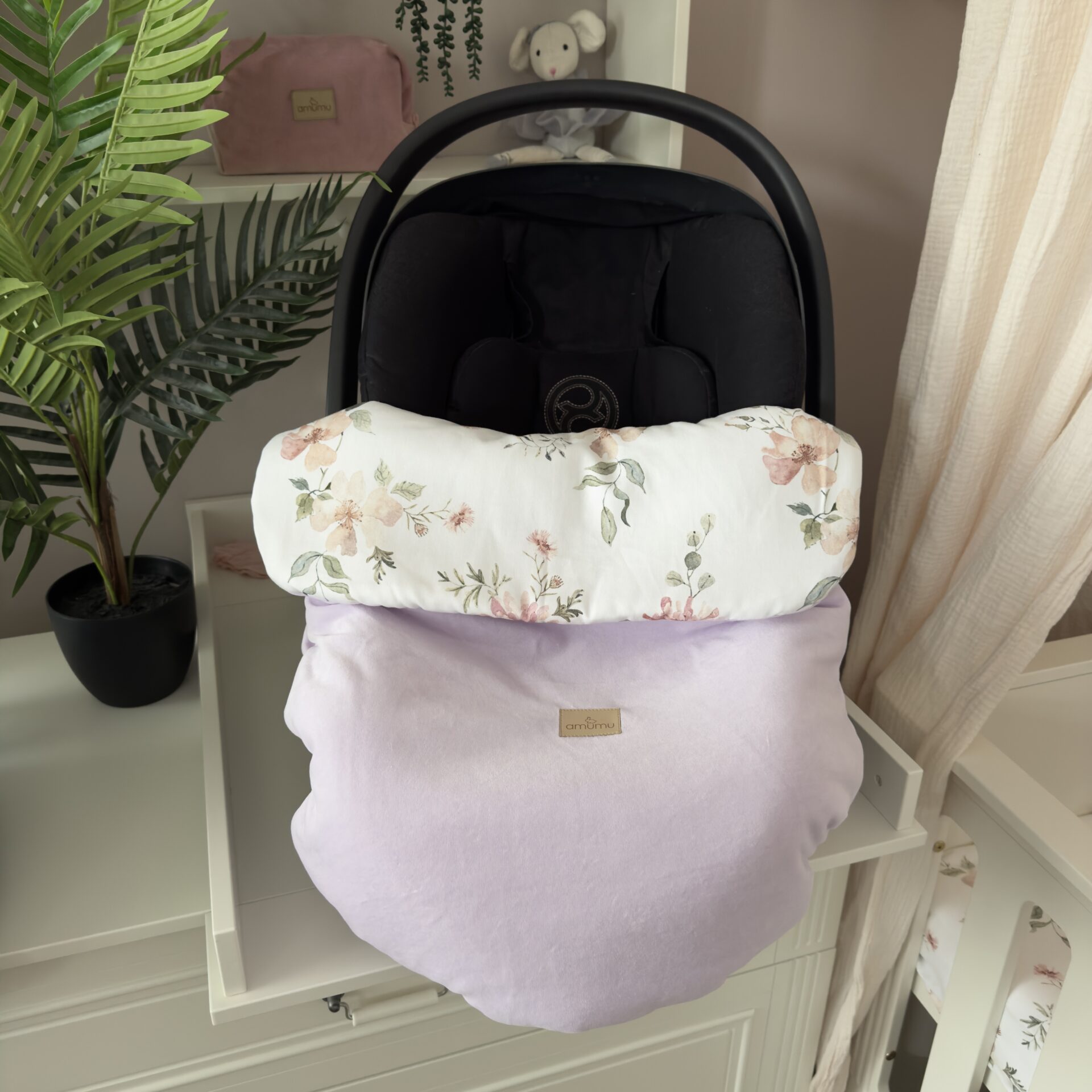 Kocyk do fotelika i wózka/półśpiworek welurowy Magiczny Ogród liliowy