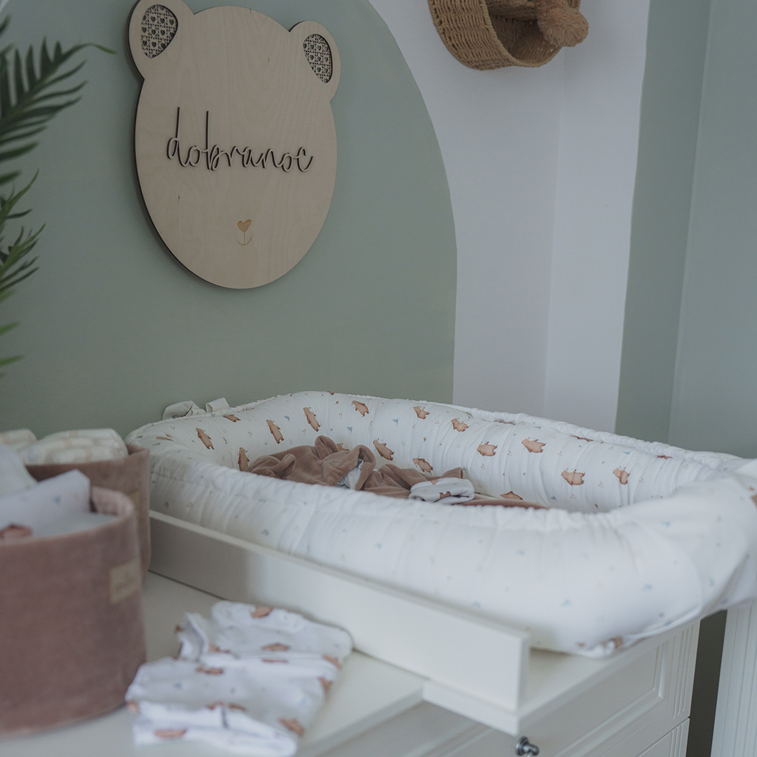 Wyjątkowy kokon niemowlęcy, wykonany z wysokogatunkowej bawełny premium z autorskim wzorem Miś Henry, to niezastąpiony hit wyprawkowy.
