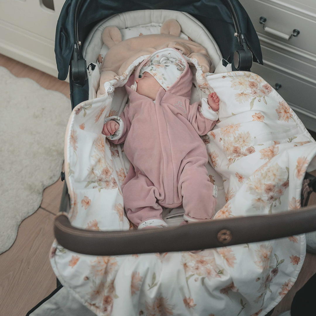 - Lekki otulacz do fotelika w wersji wiosenno – letniej w uroczy wzór Magiczny Ogród
