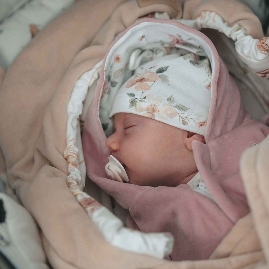Do kombinezonu polecamy czapeczkę niemowlęcą w tym samym wzorze, dzięki czemu stworzysz piękny zestaw dla niemowlaka.